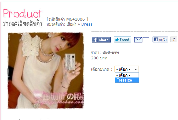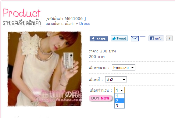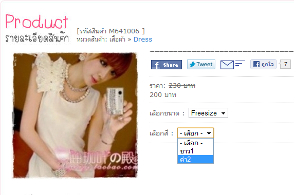 ตัวอย่างดูจากเว็บได้ครับ เมื่อเราดูสินค้าหน้าเว็บแล้วกดเข้าไป แล้ว พอกดเลือก ขนาดเสื้อ แต่มันไม่มี ช่องของสีเสื้อ ออกมาให้เลือกต่อ
