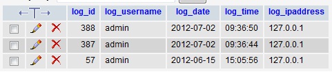 <table width="100%" border="0" cellspacing="0" cellpadding="0"> <tr> <td height="16"><table width="100%" border="0" cellspacing="1" cellpadding="1"> <tr> </tr> <tr> <td> <tr bgcolor="#003399"> <th height="36" colspan="13" bgcolor="" scope="col"> <span class="style1"><p class="head1">Member Log List</p></span></th> </tr> <tr class="head1" bgcolor="#0066CC"> <th class="head1" width="3%">No.</th> <th class="head1" width="25%">Username</th> <th class="head1" width="10%">Last Date Login</th> <th class="head1" width="10%">Last Time Login</th> <th class="head1" width="10%">IP Address</th> <th class="head1" width="4%"><div align="center"><input name="CheckAll" type="checkbox" id="CheckAll" value="Y" onClick="ClickCheckAll(this);"></div></th> </tr> <?php $strSearch = !empty($_GET['txtsearch'])? " where log_username like '%{$_GET['txtsearch']}%'":" where 1=1"; $sql = "select * from cms_log $strSearch order by log_id desc"; $result = mysql_query($sql)or die(mysql_error()); $total = mysql_num_rows($result); $pagesize = 30; // Per Page $page = 1; $total_page = ceil($total/$pagesize); if (isset($_GET[page])) $page = $_GET[page]; $start = ($page-1)*$pagesize; $sql .= " limit $start,$pagesize"; $result = mysql_query($sql); $num = mysql_num_rows($result); ?> <!-- CheckAll Delete--> <? $i = 0; while($row = mysql_fetch_array($result)) { $i++; ?> <!-- CheckAll Delete--> <?php for ($i=1;$i<=$num;$i++){ $row = mysql_fetch_array($result); $color=(@$color=="#ffffff")?"#f0f0f0":"#ffffff"; ?> <tr bgcolor="<?php echo $color?>"> <th><span class="style2"><?php echo $i+$start ?></span></th> <td><?=$row["log_username"];?></td> <td><?=$row["log_date"];?></td> <td><div align="center"><?=$row["log_time"];?></div></td> <td align="right"><?=$row["log_ipaddress"];?></td> <td align="center"><input type="checkbox" name="chkDel[]" id="chkDel<?=$i;?>" value="<?=$row["log_id"];?>"></td> <!-- Entry Not Found --> <? } if($num <= 0){ ?> <tr class="comment"> <td height="30" colspan="13" align="center" valign="middle">Entry Not Found</td> </tr> <!-- Entry Not Found --> <? } ?> <!-- CheckAll Delete--> <? } ?> <!-- CheckAll Delete--> </table> <!-- CheckAll Delete--> <tr class="delete_all"> <td class="head1" height="30"><div align="right"><input type="submit" name="btnDelete" value="Delete"><input type="hidden" name="hdnCount" value="<?=$i;?>"></div></td> </tr> <!-- CheckAll Delete--> </table>