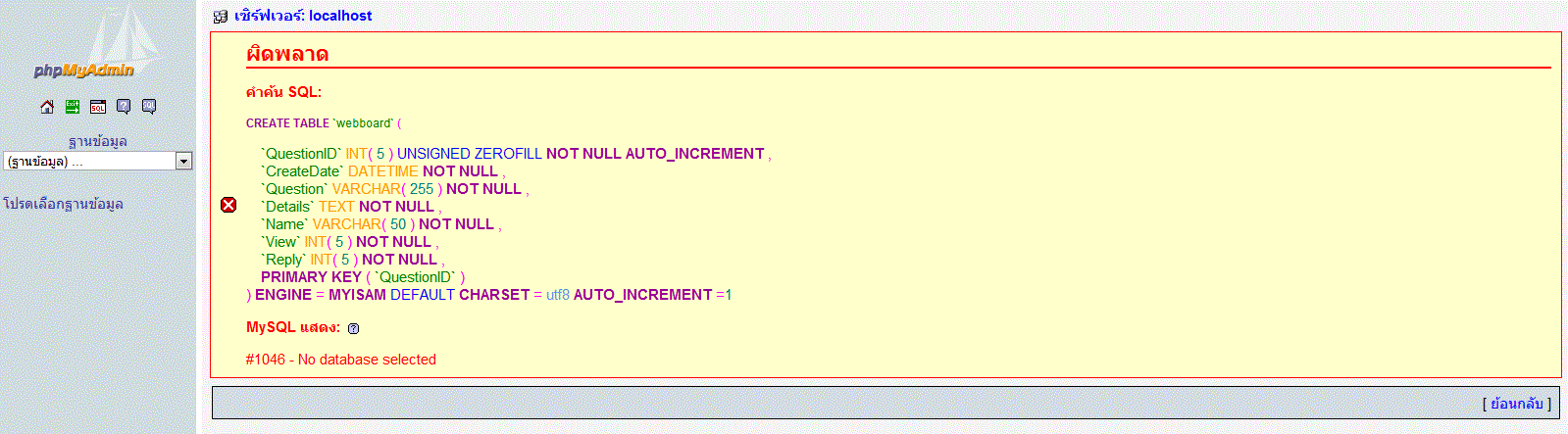 นำ Query นี้ไปรันเพื่อสร้างตารางบน phpMyAdmin หรืออื่น ๆ