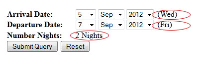 // WEEK DAY AND NUMBER NIGHTS TEXT - EDIT TEXT AS REQUIRED