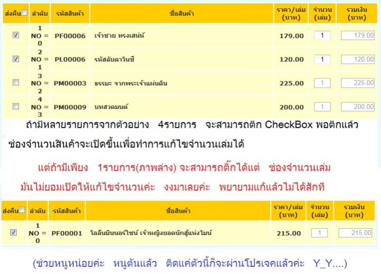 ทดลองตัดรายการหนังสือให้เหลือบรรทัดเดียวก็ได้ แล้วตรวจสอบดูว่า checkbox ทำงานปกติมั๊ย