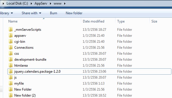 <!DOCTYPE HTML PUBLIC "-//W3C//DTD HTML 4.01//EN" "http://www.w3.org/TR/html4/strict.dtd"> <html> <head> <meta http-equiv="Content-Type" content="text/html;charset=utf-8"> <title>ตัวอย่างปฎิทินภาษาไทย</title> <link type="text/css" href="jquery.calendars.package-1.2.0/flora.calendars.picker.css" rel="stylesheet"/> <script type="text/javascript" src="jquery.calendars.package-1.2.0/jquery.min.js"></script> <script type="text/javascript" src="jquery.calendars.package-1.2.0/jquery.calendars.min.js"></script> <script type="text/javascript" src="jquery.calendars.package-1.2.0/jquery.calendars.plus.min.js"></script> <script type="text/javascript" src="jquery.calendars.package-1.2.0/jquery.calendars.picker.min.js"></script> <script type="text/javascript" src="jquery.calendars.package-1.2.0/jquery.calendars.thai.min.js"></script> <script type="text/javascript" src="jquery.calendars.package-1.2.0/jquery.calendars.thai-th.js"></script> <script type="text/javascript" src="jquery.calendars.package-1.2.0/jquery.calendars.picker-th.js"></script> <script type="text/javascript"> $(function() { $('#mydate').calendarsPicker({calendar: $.calendars.instance('thai','th')}); }); </script> </head> <body> <h1>ตัวอย่างปฎิทินภาษาไทย</h1> <p>วันที่: <input type="text" id="mydate" size="40" readonly></p> </body> </html>