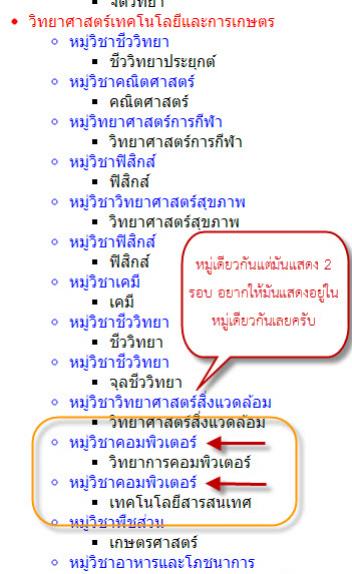 ผมจะแก้ยังไงไม่ให้ข้อมูลซ้ำตามรูปด้านล่างครับ คือสาขาวิชาต่างกัน แต่จะให้อยู่ภายใต้ หมู่เดียวกันครับ แต่ของผมทำมัน select หมู่ออกมาแสดงสองรอบครับทั้งๆที่เป็นไอดีเดียวกันครับ
