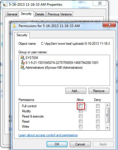 จากการวิเคราะห์คร่าวๆ คาดว่าน่าจะติดปัญหาเกี่ยวกับ permission ในการเปิดไฟล์หลังจากใช้คำสั่ง move_uploaded_file อยากรบกวนท่านผู้รู้รบกวนช่วยวิเคราะห์หน่อยครับว่าเป็นปัญหาที่อะไรครับ ? เป็นระบบปฏิบัติการ, การ config php ขอบคุณล่วงหน้าครับ