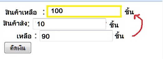 เงินทอน : <input name="ret" type="text" id="ret" size="8">บาท<br />