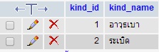 <select name="select" id="select"> <? $SQL = "SELECT * FROM ชื่อตารางภาพที่3 ORDER BY kind_type_id ASC"; $QUERY = mysql_query($SQL); $ROW = mysql_num_rows($QUERY); $i=0; while ($i<$ROW) { $RESULT=mysql_fetch_array($QUERY); ?> <option value="<?=$RESULT['kind_type_id']?>"><?=$RESULT['kind_type_name']?></option> <? $i++; } ?> </select>