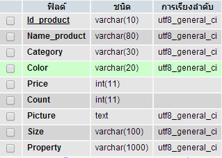 ตาราง product