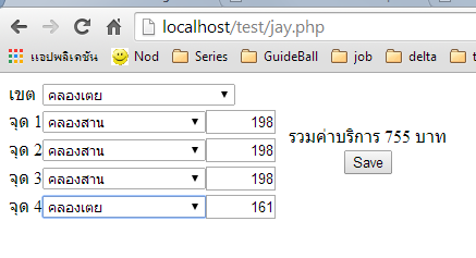<tr><td>จุด 3<select id="slc3" OnChange="getPrice( this.value, 3)" style="width: 150px" >