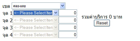 <tr><td>จุด 4<select id="slc4" OnChange="getPrice( this.value, 4)" style="width: 150px" >