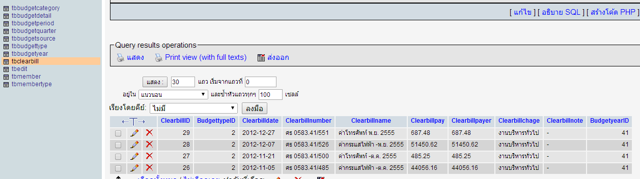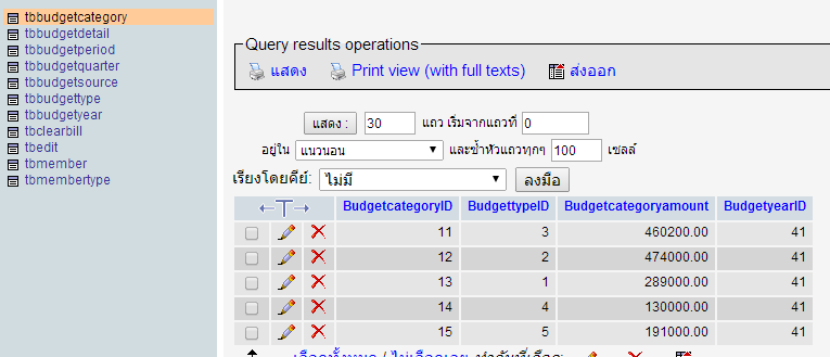 $total = 0; $sql = mysql_query("SELECT * FROM tbbudgetcategory ORDER BY BudgetcategoryID ASC"); while($row = mysql_fetch_assoc($sql)){ $totalBill = 0; $sqlTblclearBill = mysql_query("SELECT * FROM tblclearbill WHERE BudgettypeID='$row[BudgettypeID]'"); while($rowTblclearBill = mysql_fetch_assoc($sqlTblclearBill)){ $totalBill = $totalBill+$rowTblclearBill['Clearbillpay']; } $total = $row['Budgetcategoryamount']-$totalBill; echo $row['BudgetcategoryID']." เหลือเงินจำนวน ".$total."<br>"; }