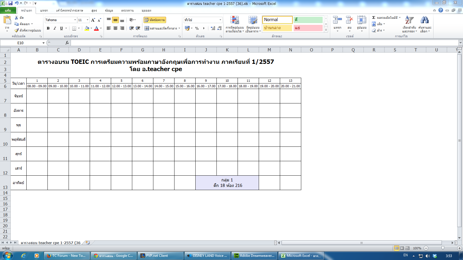 <?php session_start(); $strExcelFileName="ตารางสอน $name $term_code-$year_code.xls"; header("Content-Type: application/x-msexcel; name=\"$strExcelFileName\""); header("Content-Disposition: inline; filename=\"$strExcelFileName\""); header("Pragma:no-cache"); if($_GET["page"] != '')$page = $_GET["page"]; else $page = 0; $path = "../../include/"; include($path."database_info.php"); ?> <table align="center" width="100%"> <tr> <td align="center" style="font-size:20;color:#000;font-weight: bold;" colspan="14">ตารางอบรม TOEIC การเตรียมความพร้อมภาษาอังกฤษเพื่อการทำงาน ภาคเรียนที่ <?php echo $term_code."/".$year_code ?></td> </tr> <tr> <td align="center" style="font-size:20;color:#000;font-weight: bold;" colspan="14">โดย อ.<?php echo $name?></td> </tr> <tr> </tr> </table> <table width="50%" border="0" cellpadding="0" cellspacing="0"> <tr> <td width="7%" valign="top"> <table width="50%" border="1" cellspacing="10" cellpadding="0"> <tr> <td height="34" align="center"rowspan="2"><span class="style11">วัน/เวลา</span></td> </tr> <tr> </tr> <tr> <td height="50" align="center"><span class="style11">จันทร์</span></td> </tr> <tr> <td height="50" align="center"><span class="style11">อังคาร</span></td> </tr> <tr> <td height="50" align="center"><span class="style11">พุธ</span></td> </tr> <tr> <td height="50" align="center"><span class="style11">พฤหัสบดี</span></td> </tr> <tr> <td height="50" align="center"><span class="style11">ศุกร์</span></td> </tr> <tr> <td height="50" align="center"><span class="style11">เสาร์</span></td> </tr> <tr> <td height="50" align="center"><span class="style11">อาทิตย์</span></td> </tr> </table> <? echo '<td width="100%" align="center" valign="top">'; echo '<table border="1" width="100%" align="center" cellspacing="1">'; echo '<tr>'; echo '<td align="center" style="font-size:10;color:#000;"><span>1</span></td>'; echo '<td align="center" style="font-size:10;color:#000;"><span>2</span></td>'; echo '<td align="center" style="font-size:10;color:#000;"><span>3</span></td>'; echo '<td align="center" style="font-size:10;color:#000;"><span>4</span></td>'; echo '<td align="center" style="font-size:10;color:#000;"><span>5</span></td>'; echo '<td align="center" style="font-size:10;color:#000;"><span>6</span></td>'; echo '<td align="center" style="font-size:10;color:#000;"><span>7</span></td>'; echo '<td align="center" style="font-size:10;color:#000;"><span>8</span></td>'; echo '<td align="center" style="font-size:10;color:#000;"><span>9</span></td>'; echo '<td align="center" style="font-size:10;color:#000;"><span>10</span></td>'; echo '<td align="center" style="font-size:10;color:#000;"><span>11</span></td>'; echo '<td align="center" style="font-size:10;color:#000;"><span>12</span></td>'; echo '<td align="center" style="font-size:10;color:#000;"><span>13</span></td>'; echo '</tr>'; echo '<tr>'; echo '<td align="center" style="font-size:10;color:#000;"><span>08.00 - 09.00</span></td>'; echo '<td align="center" style="font-size:10;color:#000;"><span>09.00 - 10.00</span></td>'; echo '<td align="center" style="font-size:10;color:#000;"><span>10.00 - 11.00</span></td>'; echo '<td align="center" style="font-size:10;color:#000;"><span>11.00 - 12.00</span></td>'; echo '<td align="center" style="font-size:10;color:#000;"><span>12.00 - 13.00</span></td>'; echo '<td align="center" style="font-size:10;color:#000;"><span>13.00 - 14.00</span></td>'; echo '<td align="center" style="font-size:10;color:#000;"><span>14.00 - 15.00</span></td>'; echo '<td align="center" style="font-size:10;color:#000;"><span>15.00 - 16.00</span></td>'; echo '<td align="center" style="font-size:10;color:#000;"><span>16.00 - 17.00</span></td>'; echo '<td align="center" style="font-size:10;color:#000;"><span>17.00 - 18.00</span></td>'; echo '<td align="center" style="font-size:10;color:#000;"><span>18.00 - 19.00</span></td>'; echo '<td align="center" style="font-size:10;color:#000;"><span>19.00 - 20.00</span></td>'; echo '<td align="center" style="font-size:10;color:#000;"><span>20.00 - 21.00</span></td>'; echo '</tr>'; echo'<tr>'; //$k=0; for($i=0;$i<=6;$i++){ for($j=8;$j<=20;$j++){ //print_r($j); //echo " "; $t_start =(string)$j; $t_start = $t_start.".00"; $sql = "select * from colearning a INNER JOIN subject b ON a.subject_id = b.subject_id INNER JOIN build c ON a.build_id = c.build_id INNER JOIN room d ON a.room_id = d.room_id where UID = '$uid' and d_id = '$i' and t_start = '$t_start' and term_code = '$term_code' and year_code = '$year_code'"; $query_sql = $db->query($sql); $rec = $query_sql->fetch(); //print_r($rec); $start = (int)$rec['t_start']; $end = (int)$rec['t_end']; if(($j==$start)&&($i==$rec['d_id'])){ $h_sum = $end-$start; $sum=$h_sum*1; $namegroup = $rec['namegroup']; $n_subject = $rec['SUBJECT_NAME_TH']; $build = $rec['BUILD_CODE']; $room = $rec['ROOM_CODE']; echo '<td height="50" bgcolor="#E6E6FA" style="font-size:14;color:#000;" rowspan="1" colspan="'.$sum.'" align="center">'." กลุ่ม ".$namegroup." ตึก ".$build." ห้อง ".$room.'</td>'; $j=($j+$h_sum)-1; } else{ echo '<td height="50" colspan="1"></td>'; } } echo'</tr>'; } echo'</table>'; echo'</td>'; //} ?> </table>