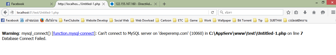 HOME > PHP > PHP Forum > ผมเชื่อมต่อฐานข้อมูล บน direct admin แล้วเกิด error ที่ไม่เคยเห็นครับ