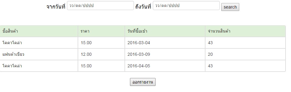 หน้า btween-date-product.php (เริ่มที่หน้านี้จะทำการเลือกข้อมูลออกรายงาน)