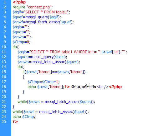คือ ผมจะเขียนหาว่าใน ฟิลด์ Name มีข้อมูลซ้ำกันมั้ย