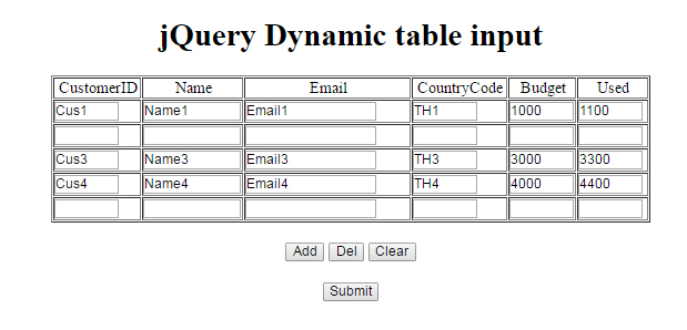 jQuery Dynamic table multi input สร้างแบบฟอร์มสำหรับ Insert ข้อมูลหลายๆ รายการ