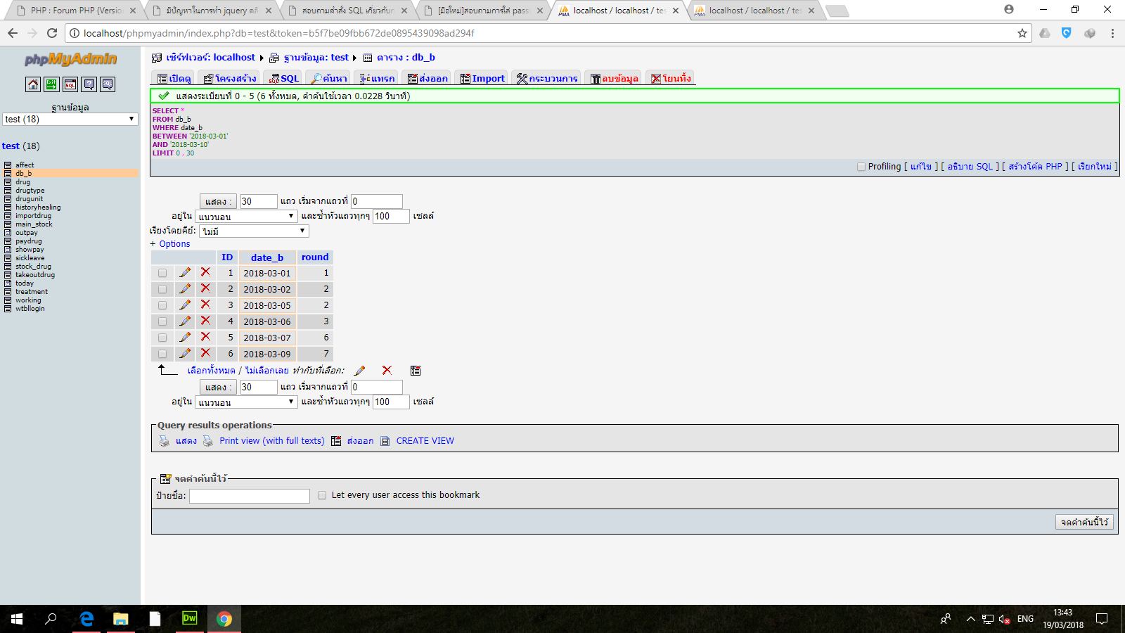 จากภาพแรกที่ 2 โดยกำหนดเงื่อนไข่ให้ B_date = '2018-03-16' และ B_round ='1'