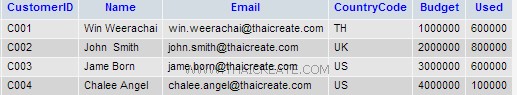 INSERT INTO `customer` VALUES ('C004', 'Chalee Angel', '[email protected]', 'US', 4000000, 100000);