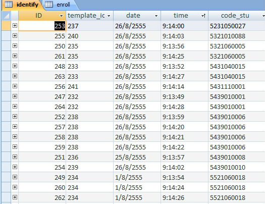 sql = "SELECT * FROM identify INNER JOIN tb_student ON ( identify.code_stu = tb_student.code_stu)" Set rs2 = connection.Execute(sql)